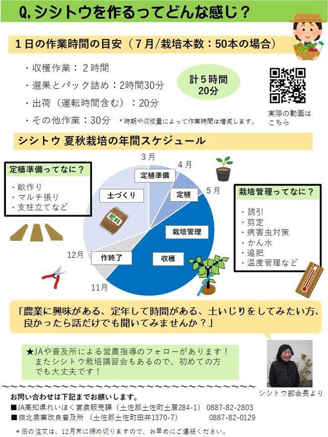 また令和7年2月7日(金)にシシトウの新規栽培者講習会を開催します。この講習会では、初心者の方を対象にシシトウの作り方について説明するので、良かったらお越しください。