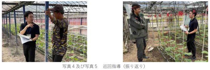 また、環境データを収集して見える化した「お返しシート」を定期的に作成し、JA営農指導員とともに各生産者への巡回指導を実施して、栽培管理状況の確認及び改善に向けたフィードバックを行いました。