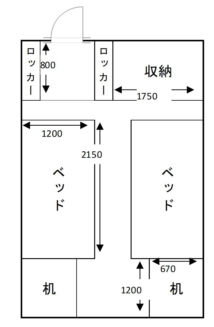 寮居室間取り図(※部屋によってレイアウトが一部異なる場合があります。)