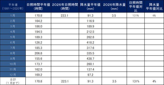 メイン 令和8年四万十市中村の気象データ(1月) >> ホーム >> 令和8年黒潮町佐賀の気象データ(1月) >> 令和8年土佐清水市の気象データ(1月) >> 令和8年四万十市中村の気象データ(1月) 幡多農業振興センター 農業改良普及課 : 2026/02/06 1月 ツイート