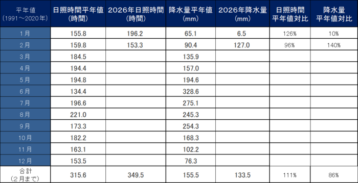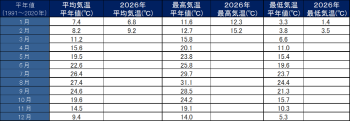 令和8年宿毛市の気象データ(2月)
