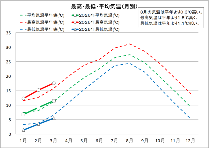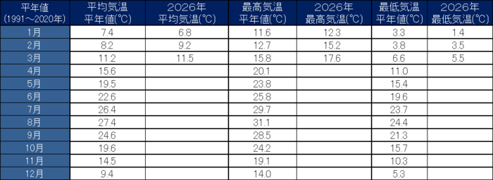 >> ホーム >> 令和8年宿毛市の気象データ(3月)
