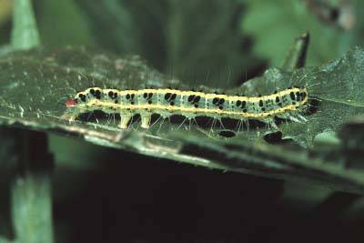 本種は薬剤に対して比較的弱いと考えられるが、老熟幼虫になると被害量が多くなるので、若齢幼虫期の防除を心掛ける。
