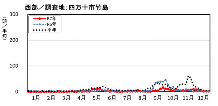 >> ホーム >> 黄色水盤によるアブラムシ類誘殺数グラフ