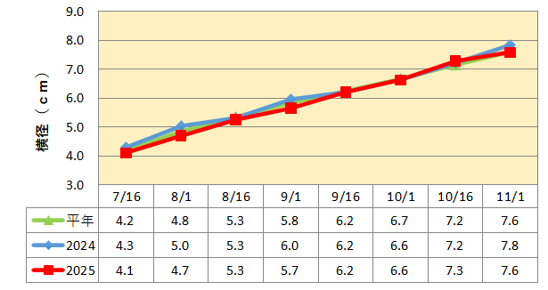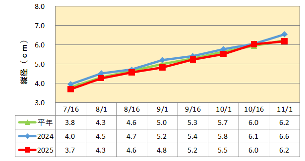 果実肥大は最終的に平年並みとなりました。
