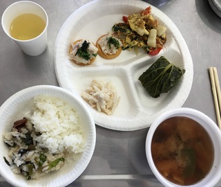 調理実習では、現6年生がアイデアを出した「昔かぶと昔大根のツナマヨカナッペ」「ロールたかな」と、「昔かぶと昔大根のフリッタータ」を、野菜ソムリエや大道加工グループ員に習って作りました。児童達は、「おいしい」「簡単だった」「家でも作りたい」等と話しながら、残さず食べていました。