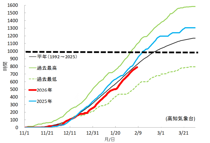 低温積算状況(高知気象台・高知地点(1992~2026))