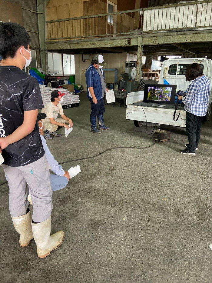 農業改良普及課は、タイムラプスカメラという静止画をつなげてコマ送り動画にできるカメラで、ナスの肥大する様子を撮影した映像を見てもらいました。ナスがどの時間帯に肥大しているのかを確認でき、「思っていた時間と違う」、「他の品種が肥大する様子も見たい」、と参加者は興味津々でした。