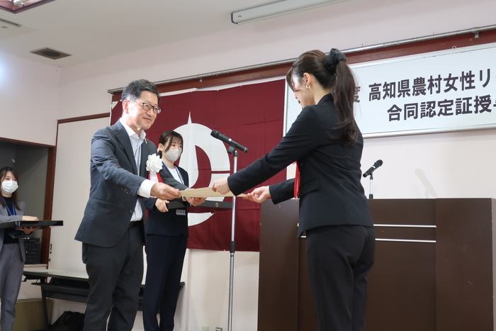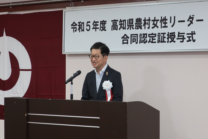 農村女性リーダー及び青年農業士の一員となられた皆さんが、これまでの農業経営や組織活動などを通じて培ってこられたノウハウや人の繋がりを生かし、今後の高知県農業の発展にご尽力いただき、また地域のリーダーとしてご活躍いただけますことをお祈りしています。
