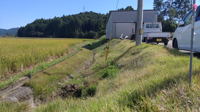 そこで、令和4年度から野芝を畦畔法面に定植し、選択性除草剤を散布して定着を促すことで、刈払機による草刈り回数を減らす雑草管理の省力化を検討しました。